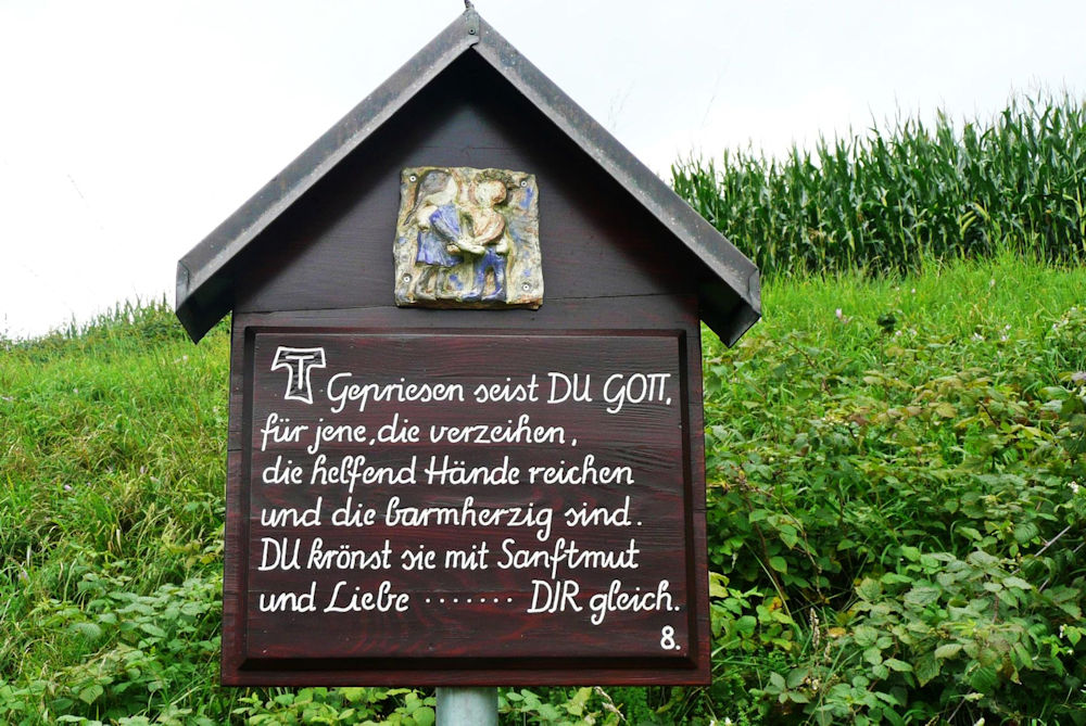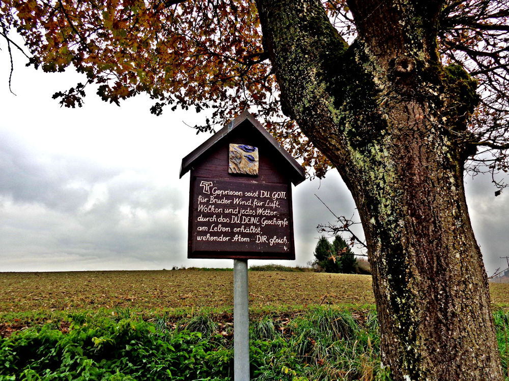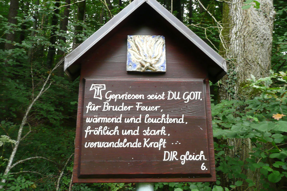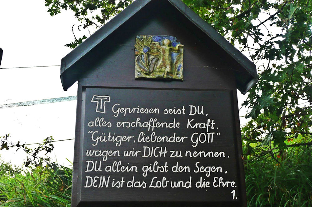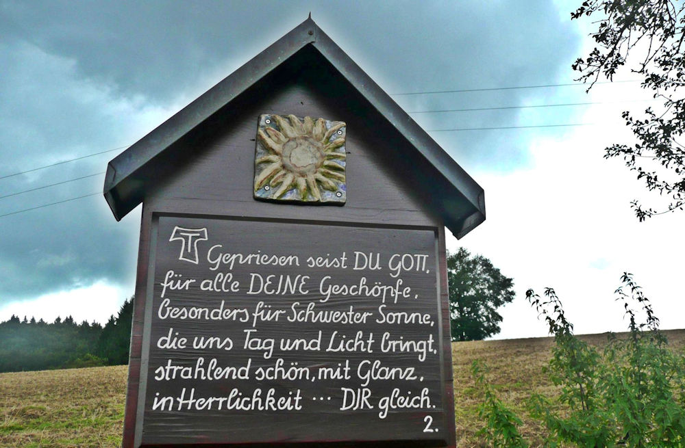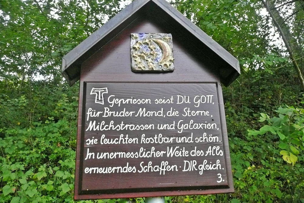 10 Tafeln mit den Versen des "Sonnengesang" von Franziskus stehen am Wanderweg. Schüler einer 5. Hauptschulklasse modellierten dafür die Keramiktafeln.