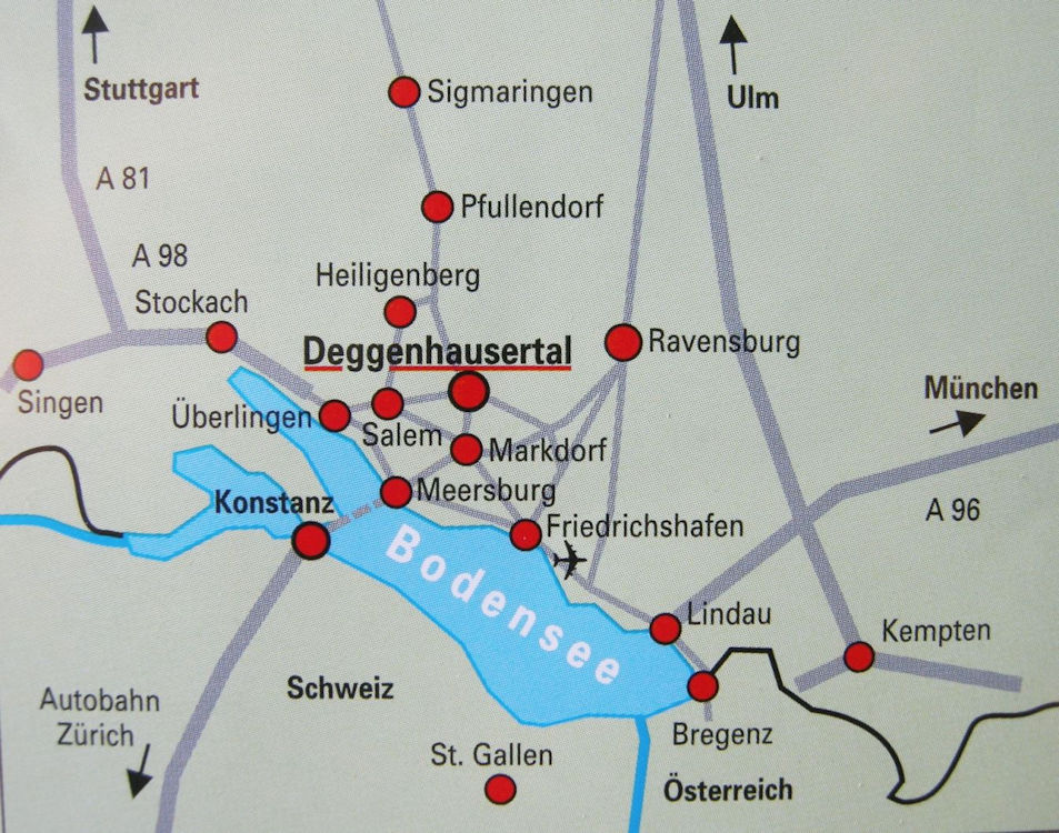 Von Stuttgart: A81, Stockach, Überlingen, Salem (Richtung Deggenhausertal), Wittenhofen, Azenweiler, Limpach.Von München: A96 Wangen, Ravensburg (Richtung Meersburg), Hefigkofen, Urnau,Wattenberg, Limpach.