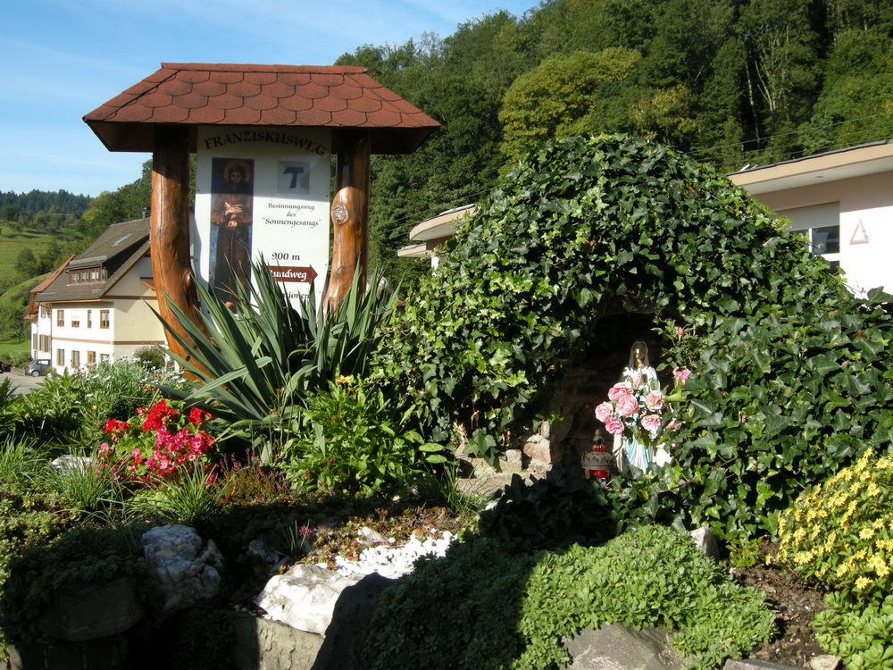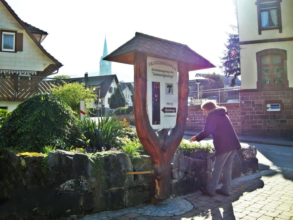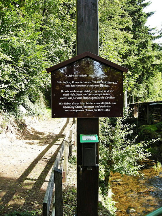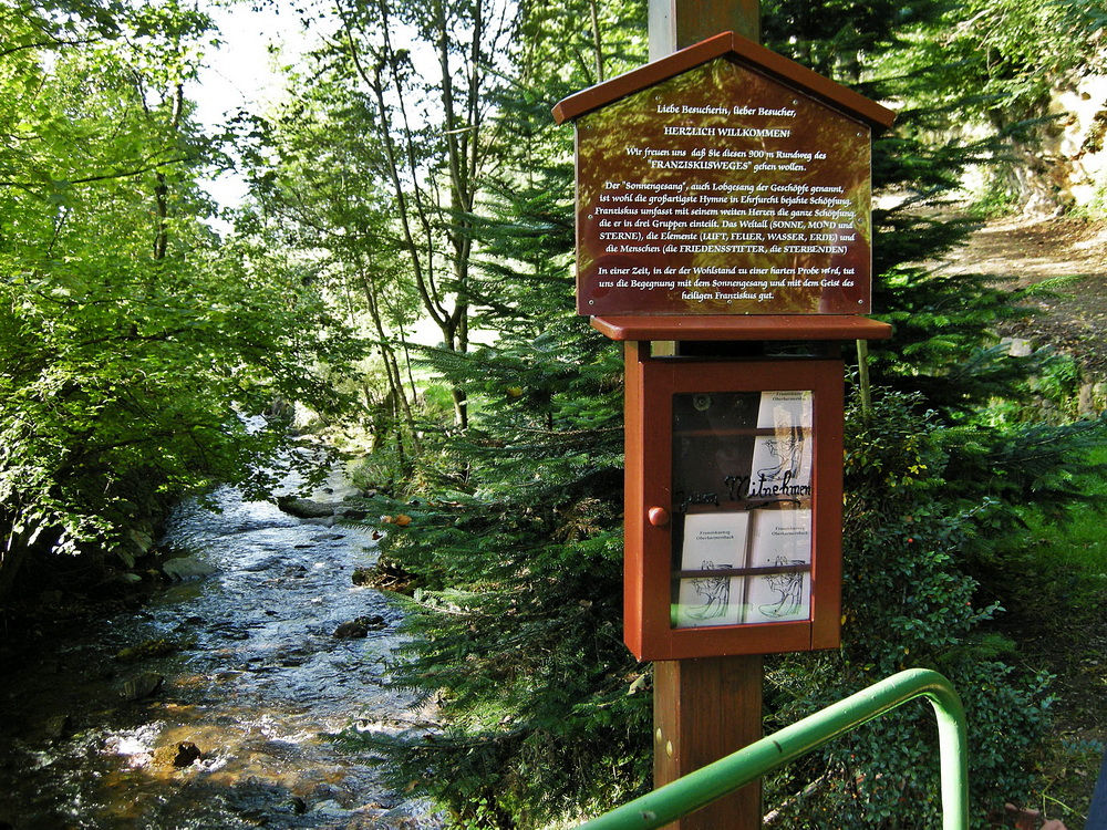 und Einfallsreichtum Menschen gewonnen, die ihr bei der Umsetzung dieser Idee geholfen haben. Und so entstand ein Besinnungsweg über 12 Stationen, der mit dem Dreieinigen Gott beginnt und dem großen Lobpreis des Franziskus durch alle Geschöpfe, die er Bruder und Schwester nennt, endet. Jede Station hat seine Eigenart und passte sich an die Gegebenheiten des jeweiligen Platzes an.