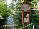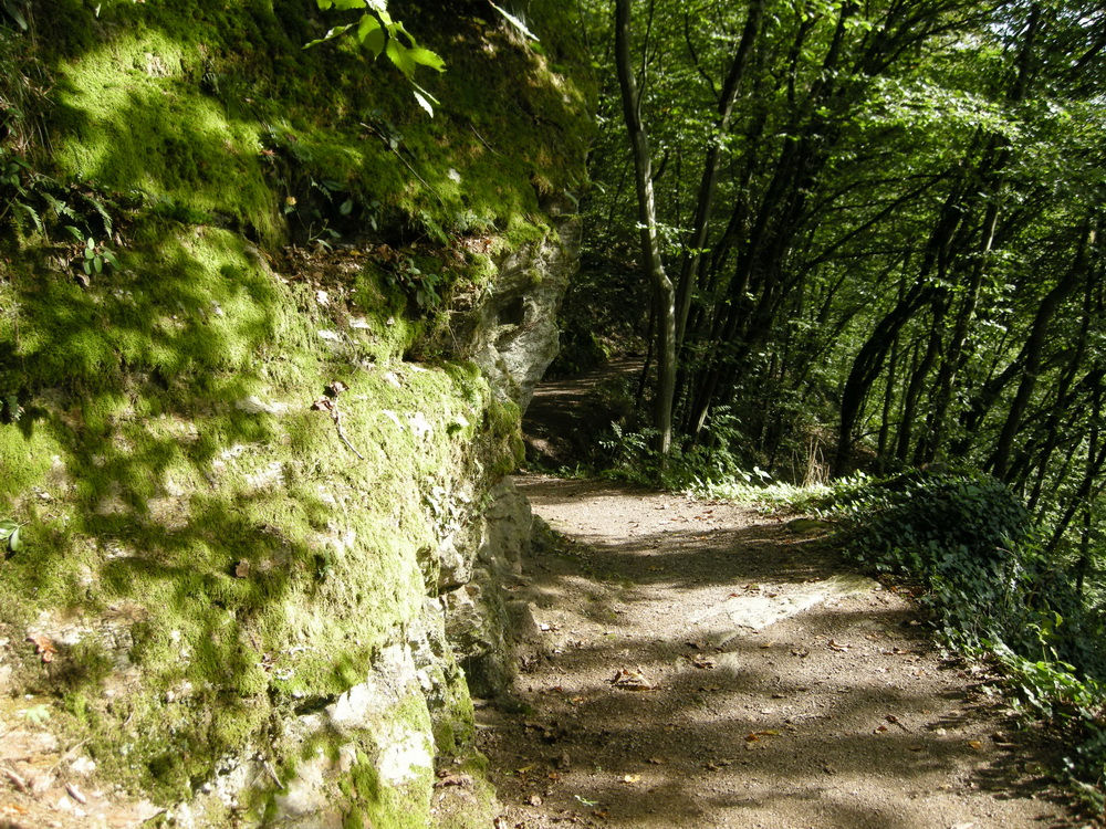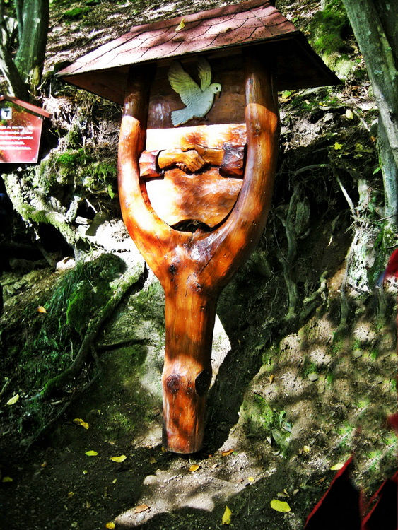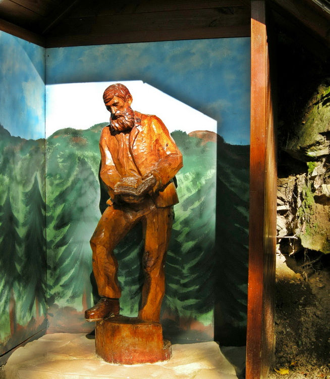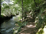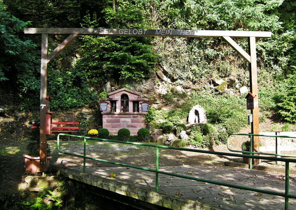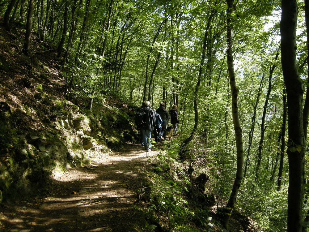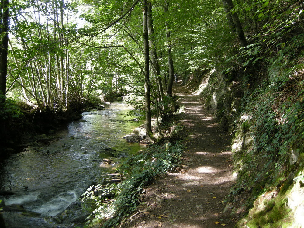 Angenehmer, beschatteter Bergpfad mit schönen und besinnlichen Stationen.
