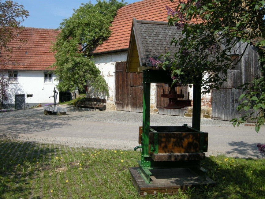 Neben Häusern mit kleinen Gärtchen prägen Hinterhöfe, Scheunen und Hütten, sowie einige sehr alte Bauernhäuser den Weiler. In dem Haus neben dem Brunnen wurde über Generationen das Schuhmacherhandwerk betrieben. Unten befand sich ein kleiner Kuhstall. Jahrhunderte lang stand neben Scheune und Remise eine Kapelle. Kurios: Um 1650, zur Zeit der Lehensherrschaft der Grundherren gehörten die fünf Häuser um diesem Platz fünf verschiedenen Grundherren: Den katholischen Grafen von Rechberg, Staufeneck und Degenfeld, dem Kloster Adelberg, sowie dem Cameralamt Göppingen als Rechtsverweser für das protestantische Württemberg. Nachbarliche Streitigkeiten riefen also jeweils die Herrschaften auf den Plan. Die Württemberger sperrten den Knecht eines Grafen in den Kerker, weil er mit seinem Getreidefuhrwerk über deren Felder gefahren war, verlangten zehn Häller Auslösung. Der Vogt des Grafen fand ebenfalls eine Gelegenheit, einen württembergischen Untertanen in Arrest zu nehmen. Schließlich: Vergleich.