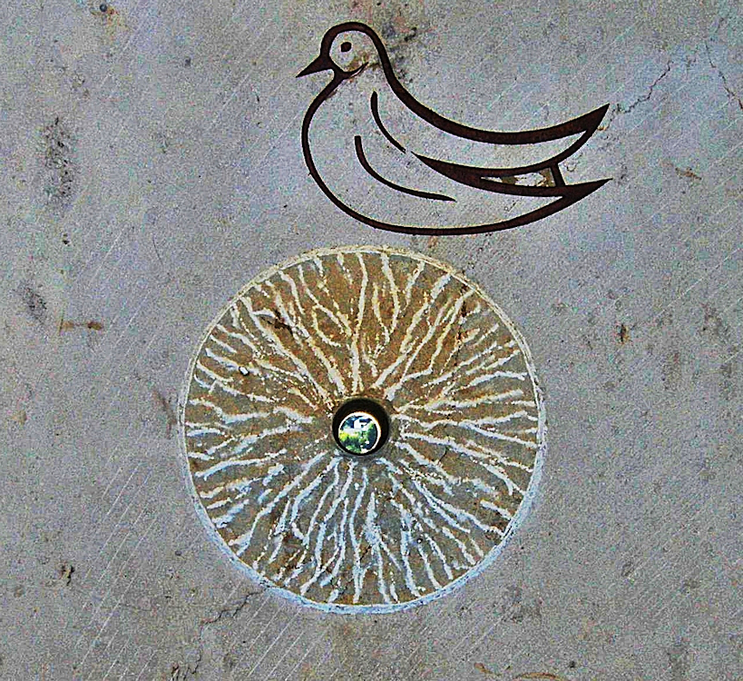 Die letzten Schritte dieser Wanderung führen wieder auf den Kirchplatz. Am Brunnen vor dem Pfarrhaus steht die letzte Station des Sonnengesangsweges, der Schluss Vers.